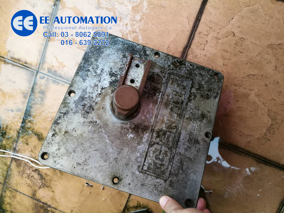 Punca kerosakan teruk dihadapi underground swing autogate customer di Ampang ini disebabkan dimasuki air yang telah merosakan underground autogate gearbox dan underground autogate motor. Pada mulanya kami datang lakukan underground autogate checking dulu sebab sebelah underground autogate motor buka separuh dan sebelah lagi tak boleh buka langsung. Apabila buka sahaja underground autogate cover, memang penuh dengan air.